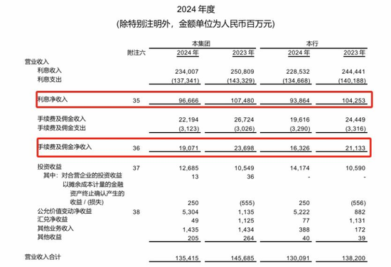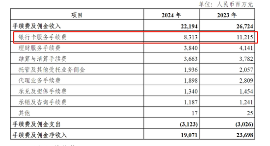 手续费及佣金收入方面,光大银行2024年同比下降19%,其中银行卡服务收入减少约29亿元,理财、托管等中间业务同样承压。