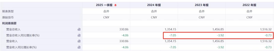 2022-2024年,光大银行营收已经连续三年下降,分别同比下滑0.73%、3.92%、7.05%,其中,2024年跌幅创近年新高。