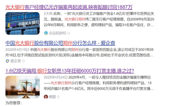 更值得注意的是,光大银行郑州某支行客户经理,涉嫌通过伪造理财产品协议、私刻公章等手段,向31名客户虚构“保本保息、高收益”的理财产品,累计诈骗金额达1.6亿元。