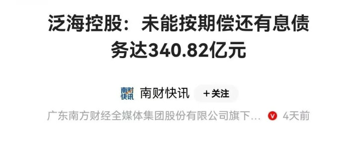 根据泛海控股最新公告,到今年11月30日,公司未能按期偿还的有息债务总共是341亿元。今年中报时,有息债务还是328亿元。今年7月,泛海控股子公司武汉中心大厦和武汉泛海城市广场两个项目刚被债权人申请破产清算,境外附属公司中泛控股也被颁布了清盘令。